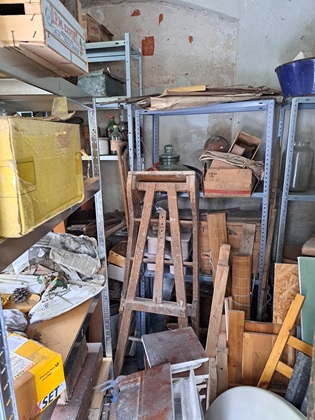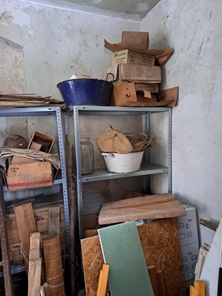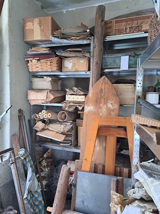 Die Gegenstände, die dabei zu Tage gefördert wurden, wurden zum großen Teil im Waschhaus, dem kleinen Anbau am Nebengebäude, untergestellt. Hier wurde der Platz allerdings bald recht knapp. Die Durchsicht der Bestände erbrachte dann die Erkenntn is, dass einige der Gegenstände in so desolatem Zustand waren, dass ihre Aufbewahrung wenig ratsam erschien.