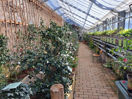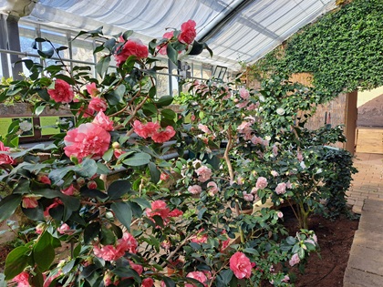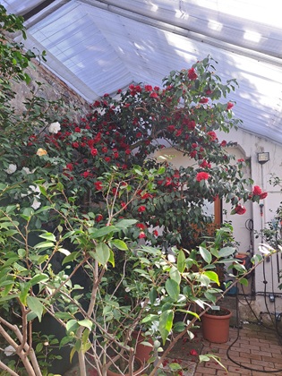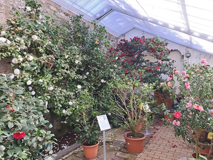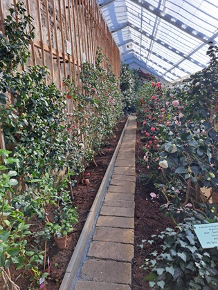 Bedeutend sind insbesondere die großen historischen Kamelien, die im hinteren Bereich des Gewächshauses stehen. Diese stammen wohl aus der ersten Hälfte des 19. Jahrhunderts. Sie haben auch eine durchaus eindrucksvolle Größe.