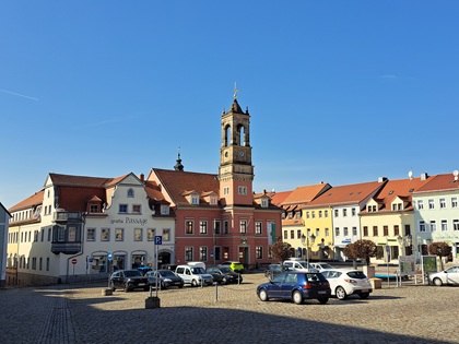 Auffällig war  nur, dass sie quasi leer war. Menschen waren kaum zu sehen, Cafés und geöffnete Geschäfte auch nicht. Hier bot nur der Lidl bzw. die auf seinem Gelände befindliche Bäckerei am Rand der Altstadt einen kleinen Ausgleich. Eigenartig, dass es in den vergangenen Jahrzehnten nicht gelungen ist, diese Lage zu verbessern. Aber das gilt ja für viele Orte. Königsbrück ist gar nicht mal so schlecht an die Landeshauptstadt angebunden: Es besteht eine stündliche und ca. einstündige Bahnverbindung.