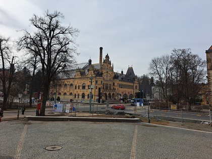 Schräg gegenüber befindet sich die Liberecer Kunstgalerie, die Galerie im Bad, die, dem Namen entsprechend, in einem ehemaligen Schwimmbad aus der Kaiserzeit untergebracht ist.