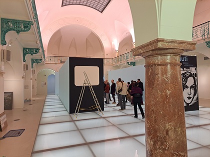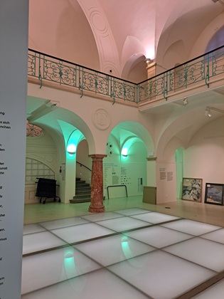 Ansonsten zeichnet sich die Galerie durch auffällige architektonische Parallelen zum benachbarten Museum aus, ein monumentales Treppenhaus: