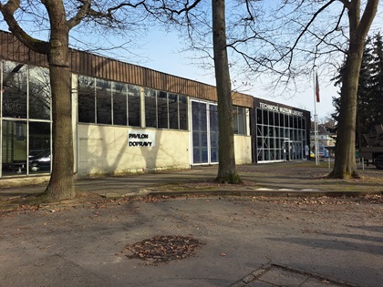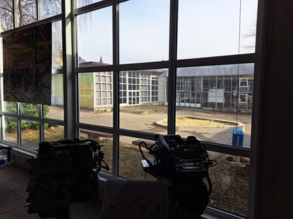 Und wiederum nur über die Straße befindet sich das dritte an diesem Tag besichtigte Museum: Das Technische Museum Liberec. Untergebracht ist es auf dem Gelände und in den Gebäuden der ehemaligen Messe und hat dadurch architektonisch eine ganz andere Erscheinung als die beiden Museen zuvor. Tatsächlich fand ich, dass sich insbesondere die leichten, pavillonartigen Hallen, die sich um einen Hof gruppieren und eine Raumfolge bilden, sehr gut für eine museale Sammlungspräsentation eignen: