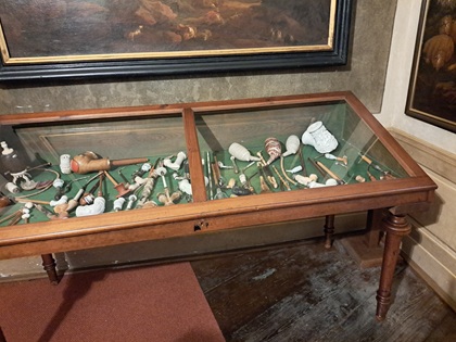 In einer Vitrine fand sich eine kleine Ausstellung, die von zwei 5-jährigen Jungen erstellt wurde. Sie hatten sich mit dem Wunsch, eine solche Ausstellung machen zu dürfen, an das Museum gewandt. In der Vitrine haben sie Objekte zusammengetragen, die sie als „alt“ einschätzten: